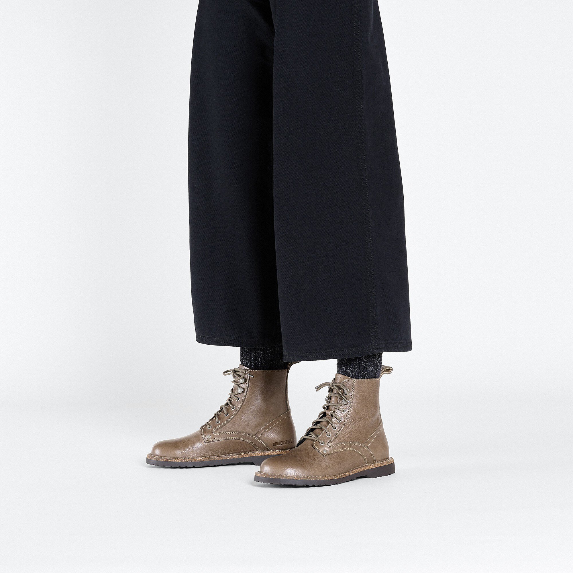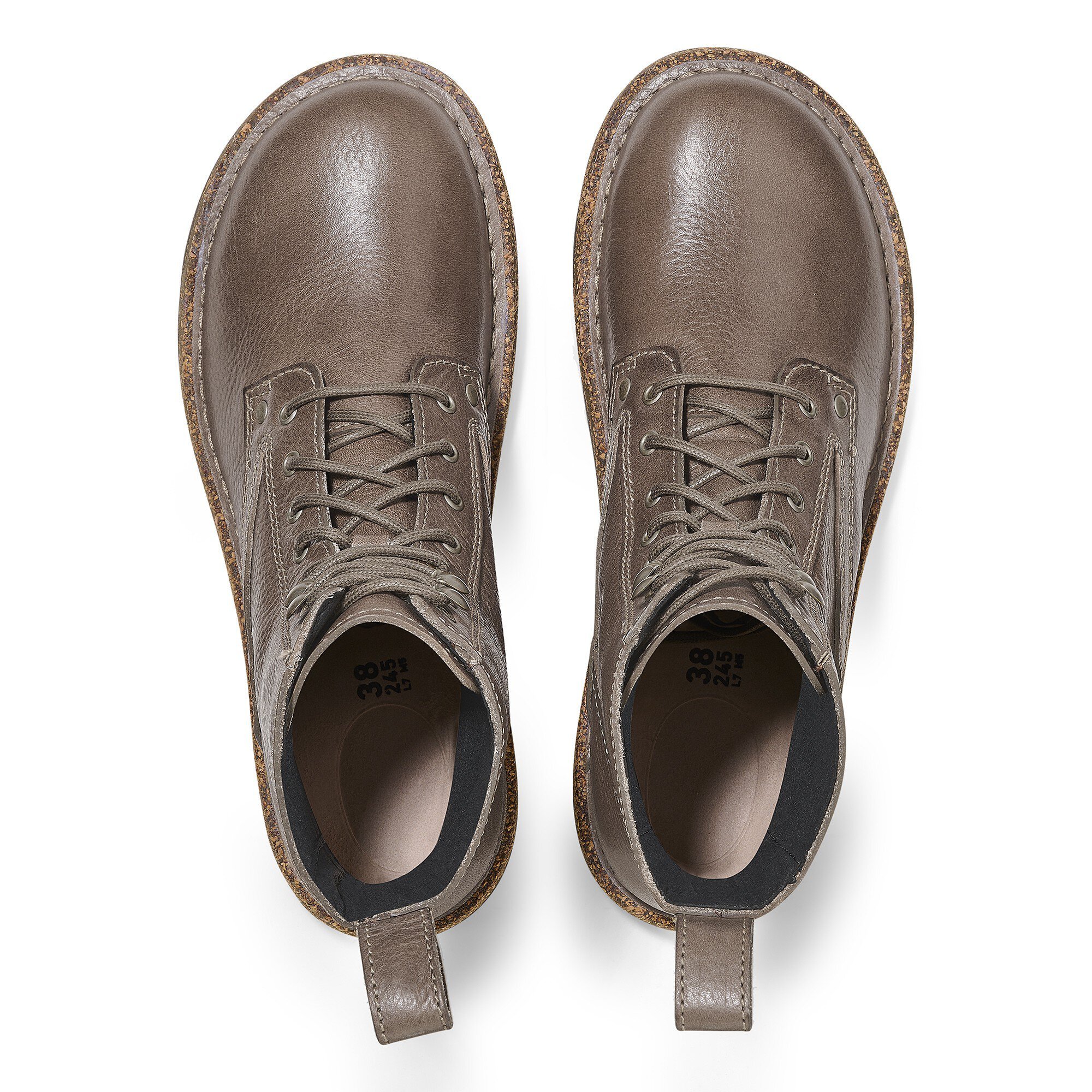 The Bryson boot gives you a contoured cork footbed in a classic, lace-up design. Natural leather lends a soft, fine-grained texture to the upper. With a cork PU midsole, this style is instantly recognizable as a BIRKENSTOCK design. Tread comfortably.