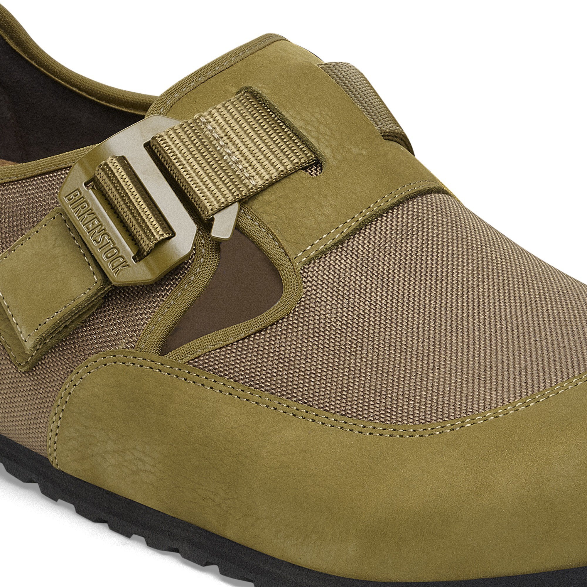 Push city limits like never before. Introducing the London Nova shoe, featuring utility-inspired buckles and an engineered sole equipped for trekking through any city. Nubuck leather and durable textile merge classic sensibilities with tech-forward style. Designed on a supportive contoured footbed, this one maximizes your comfort to match your hustle.