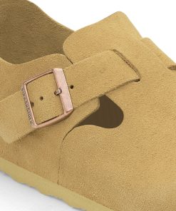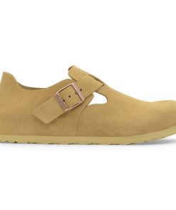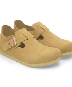 One of the first closed-toe styles from BIRKENSTOCK, The London is the epitome of simplicity with clean lines and an adjustable buckle strap. The iconic footbed provides signature comfort and support. With an easy fit and feel, it boasts a natural, rustic look with a soft suede upper